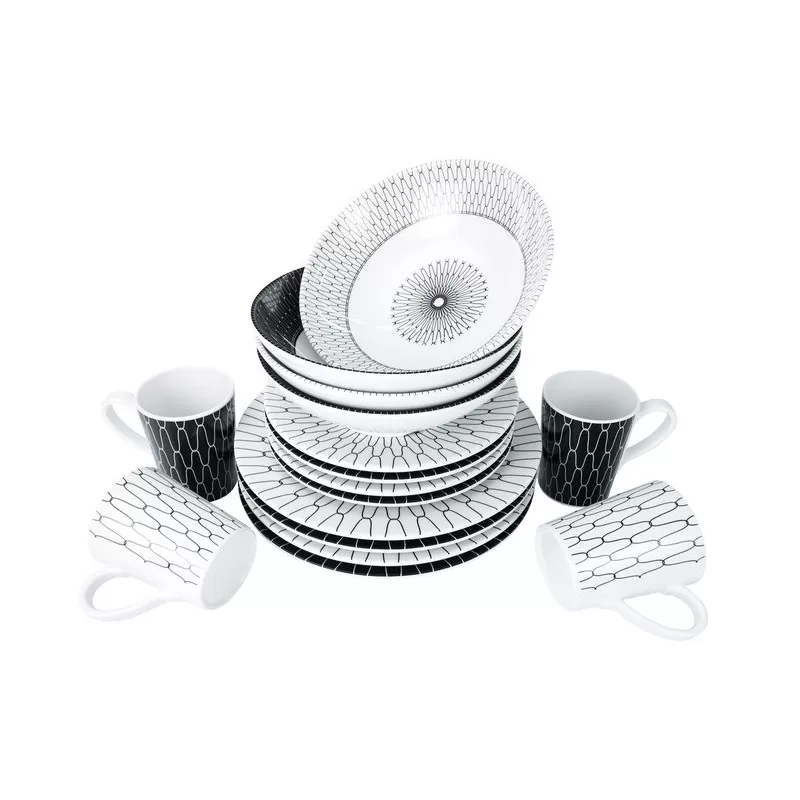 CAMP4 Set vaisselle Black-White 16 pièces.
