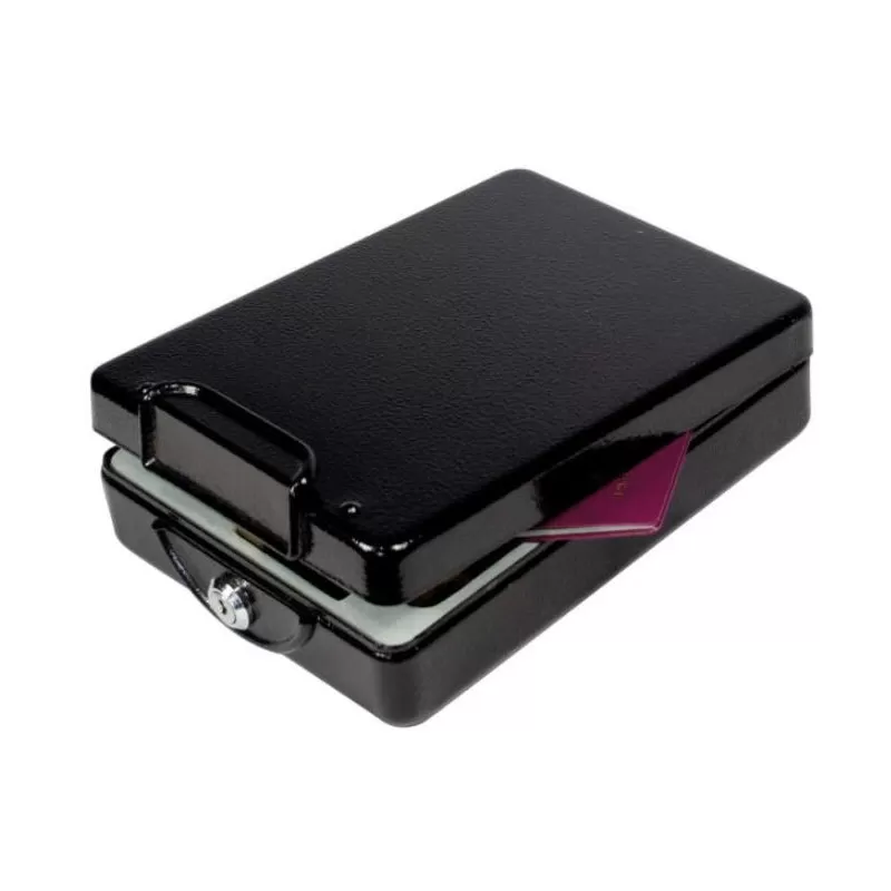 Avec ses dimensions de 15 x 21 x H 5,5 cm, ce coffre-fort a été imaginé par CARBEST pour mettre à l’abri vos documents d’identité, votre argent et carte bancaire par exemple. Verrouillable à clé, il est également livré avec un support de fixation à vis si vous souhaitez par exemple l’installer dans un équipet du bateau ou un meuble du camping-car.