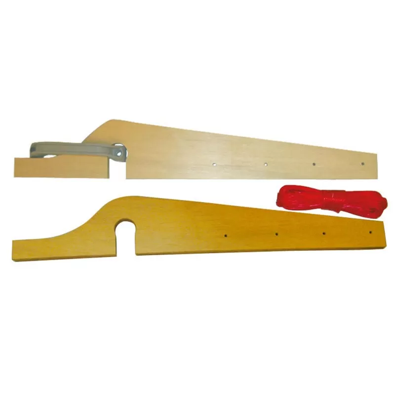 Système de fil à linge pour caravane ou remorque, ce séchoir à corde se fixe sur les poignées grâce aux deux bras en bois. Pratique et efficace !