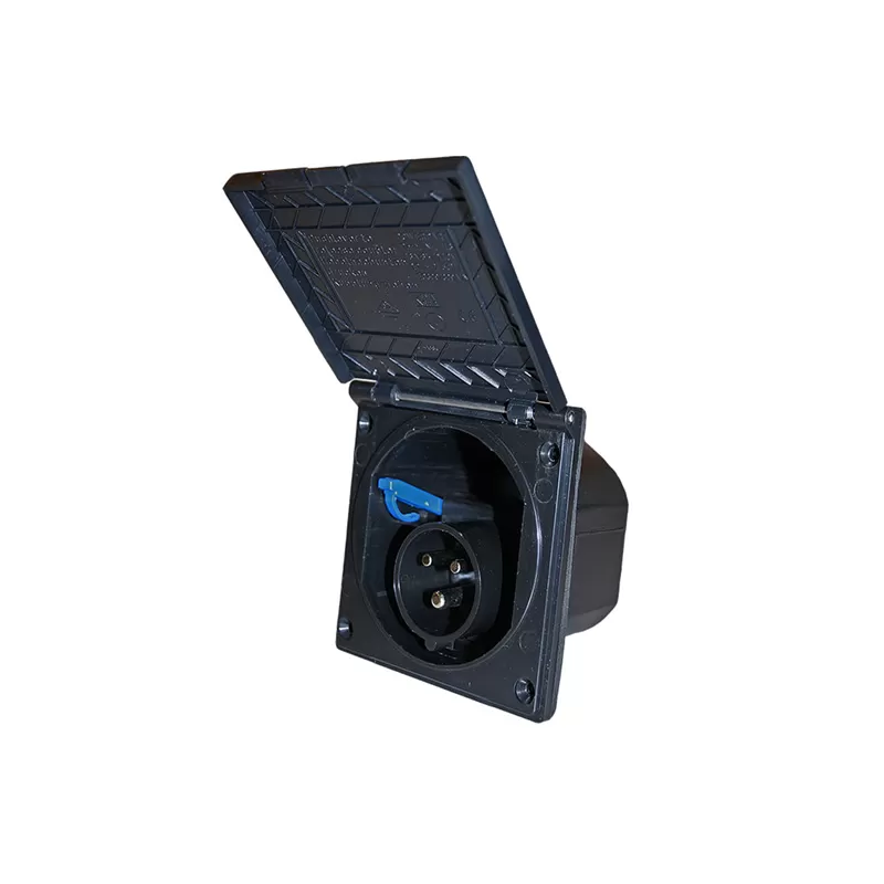 Prise socle male CEE P17 HABA à encastrer sur cloison verticale pour apporter le 220 V à bord des camping-cars et fourgons aménagés