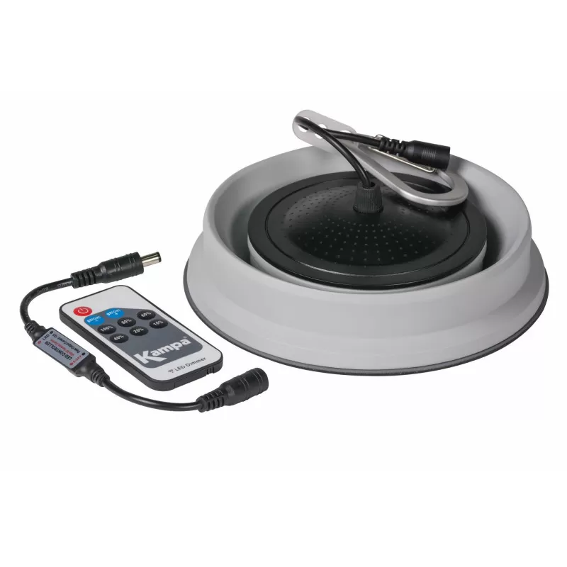 Éclairez votre campement avec la KAMPA Groove. Cette lampe LED de plafond bénéficie d’une suspension en silicone souple, pouvant se compresser pour se ranger dans les placards les plus exigus. Idéal pour le camping, ou dans votre fourgon aménagé ou bateau.