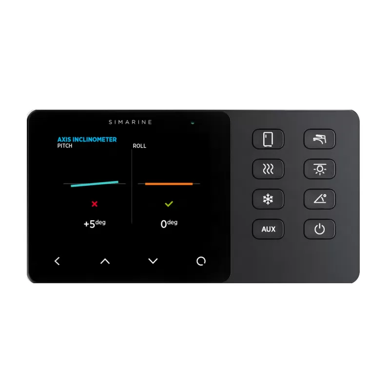 Mais SIMARINE va encore plus loin ! Le panneau SCP100 Dispose d’une connectivité WIFI pour assurer une lecture des informations depuis votre smartphone. En option, il est également possible d’ajouter un inclinomètre, pour stationner votre véhicule parfaitement à plat !